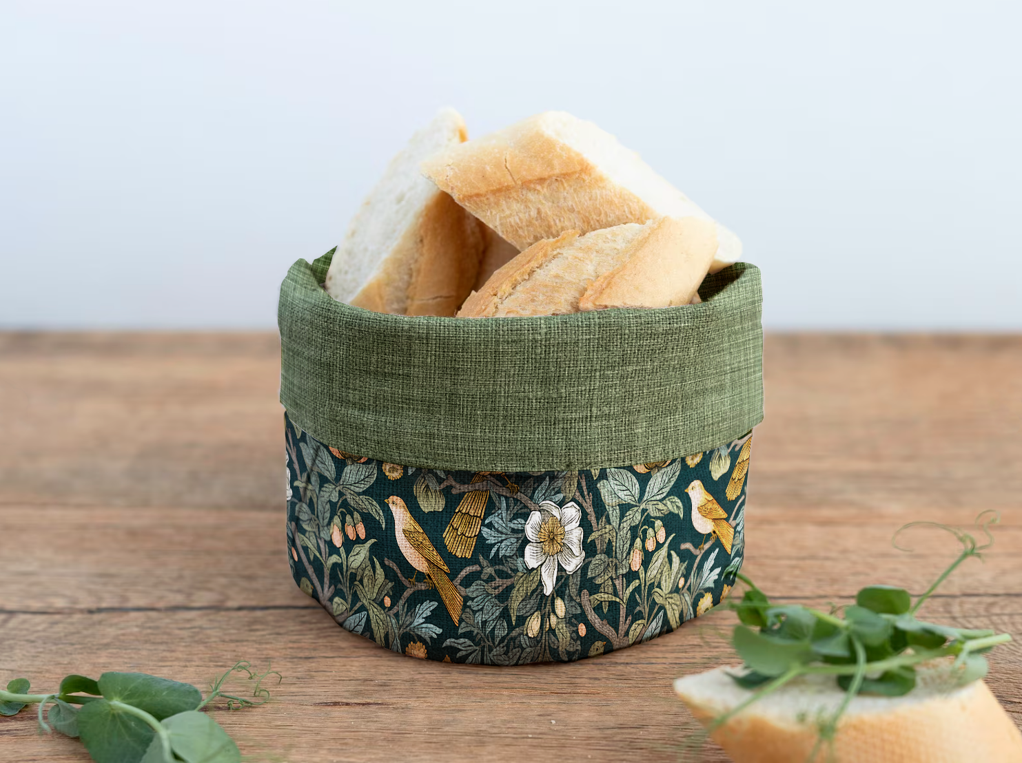 Lleva un toque natural a tu mesa con nuestra Panera Enchanted Garden. Con delicados pajaritos dorados entre un follaje verde profundo y un borde doblado en tono musgo con textura lino, esta pieza artesanal es fácil de cuidar y perfecta para servir pan, repostería o fruta fresca con estilo.