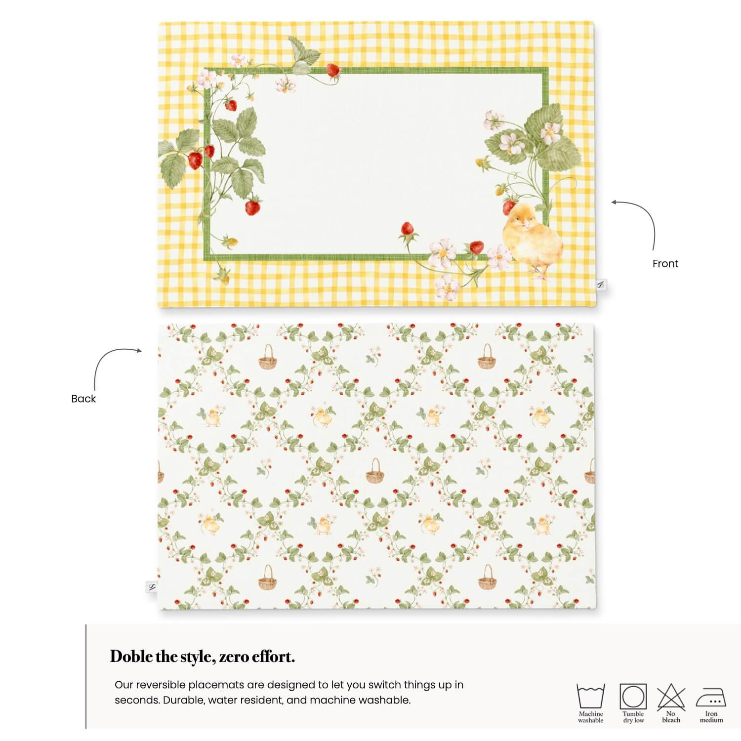Nuestros individuales reversibles están confeccionados con AquaRepel™, una tela antifluido que ayuda a repeler líquidos y facilita la limpieza diaria. Su diseño doble cara te permite cambiar el estilo de tu mesa simplemente volteándolo, combinando practicidad y diseño en cada comida.