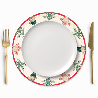 Da un aire festivo y lleno de alegría a tu mesa con esta funda de bajaplato inspirada en los tradicionales cascanueces. Con un diseño vibrante que combina figuras coloridas marchando sobre un fondo de cuadros en blanco y negro, transforma cada mesa en un escenario navideño encantador.