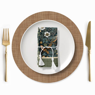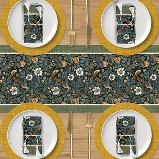 Step into a storybook scene with our Enchanted Garden Collection. Featuring hand illustrated birds, blooming florals, and leafy branches over a deep forest backdrop, this design brings depth, elegance, and a touch of wonder to your table. The rich palette of earthy greens, warm corals, and soft creams makes it perfect for cozy gatherings and timeless celebration.