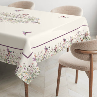 Step into a moment of quiet wonder with our Secret Garden Napkin. Watercolor blossoms in soft purples, pinks, and yellows bloom alongside hummingbirds and wildflowers on a creamy backdrop. A rich plum border frames the airy floral design, adding elegance and balance to this delicate, nature inspired piece.