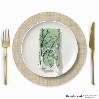 Set a serene and elegant tone with our Whispers of Spring Napkin. Intertwining branches with tiny blush blossoms bloom across a soft sage green backdrop. A scalloped border frames the design with grace, evoking the quiet beauty of nature awakening after winter delicate, timeless, and perfect for elevating any table setting.