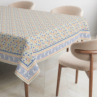 Bring a burst of color and whimsy to your table with our Wild Garden Napkin. Hand illustrated blue florals and clusters of orange berries weave through flowing green vines. Framed by intricate blue and saffron borders, this design captures the lively spirit of a countryside garden in full bloom.