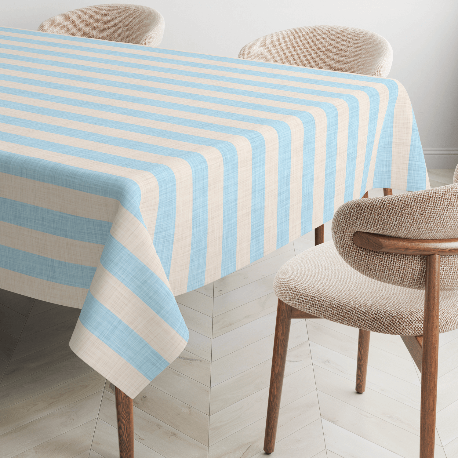 A breeze of blue for your table, our Sky Linen Stripes Tablecloth adds a refreshing, airy touch to any setting. With soft sky blue stripes on a natural linen look base, it evokes calm mornings and slow afternoons with effortless charm.