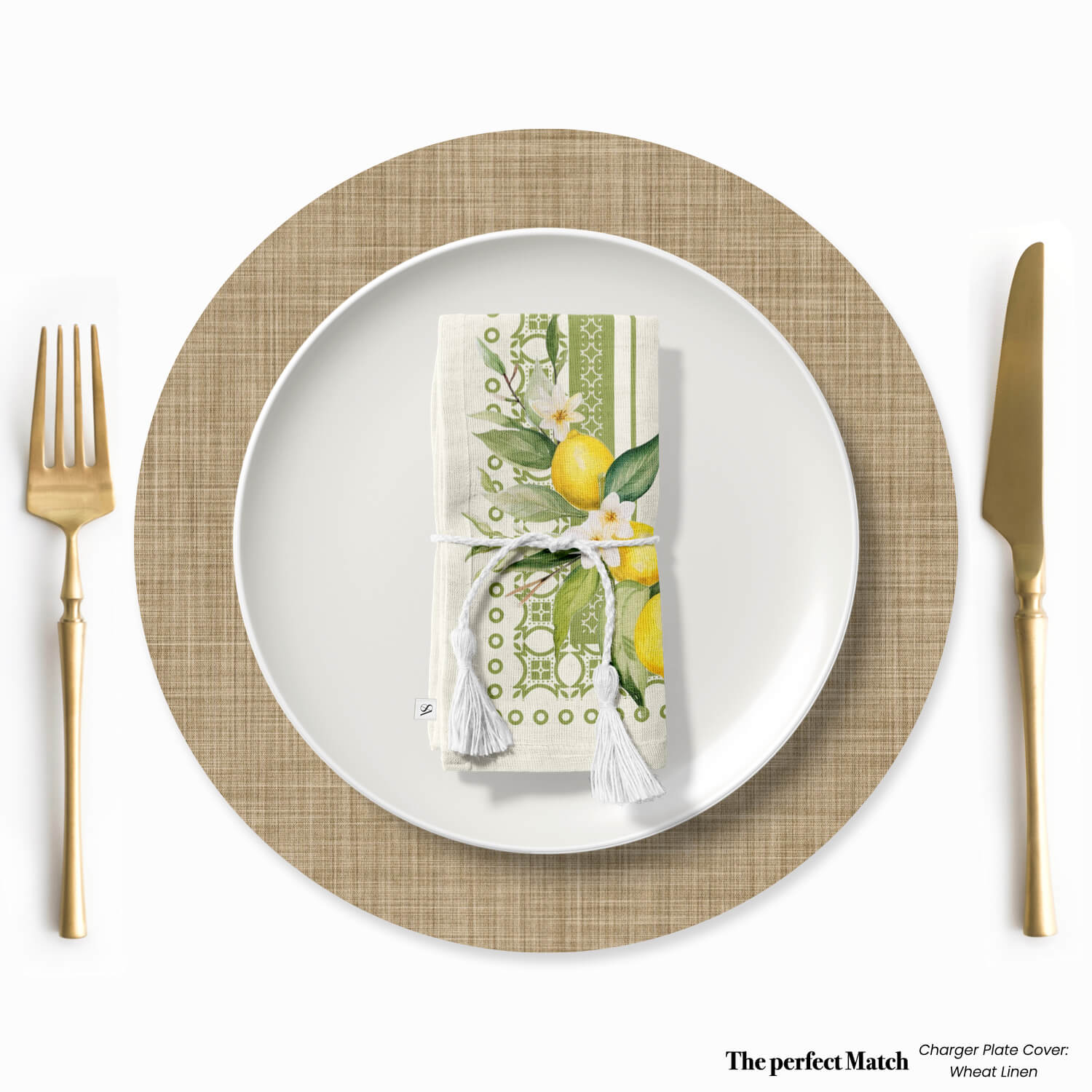 Our Sorrento Lemon Napkin features hand illustrated lemons and white blossoms framed by a delicate olive green lattice print, capturing the freshness of southern Italy. Handmade from easy care fabric, it’s a cheerful accent for alfresco lunches and lively family dinners bringing brightness and joy to every table.
