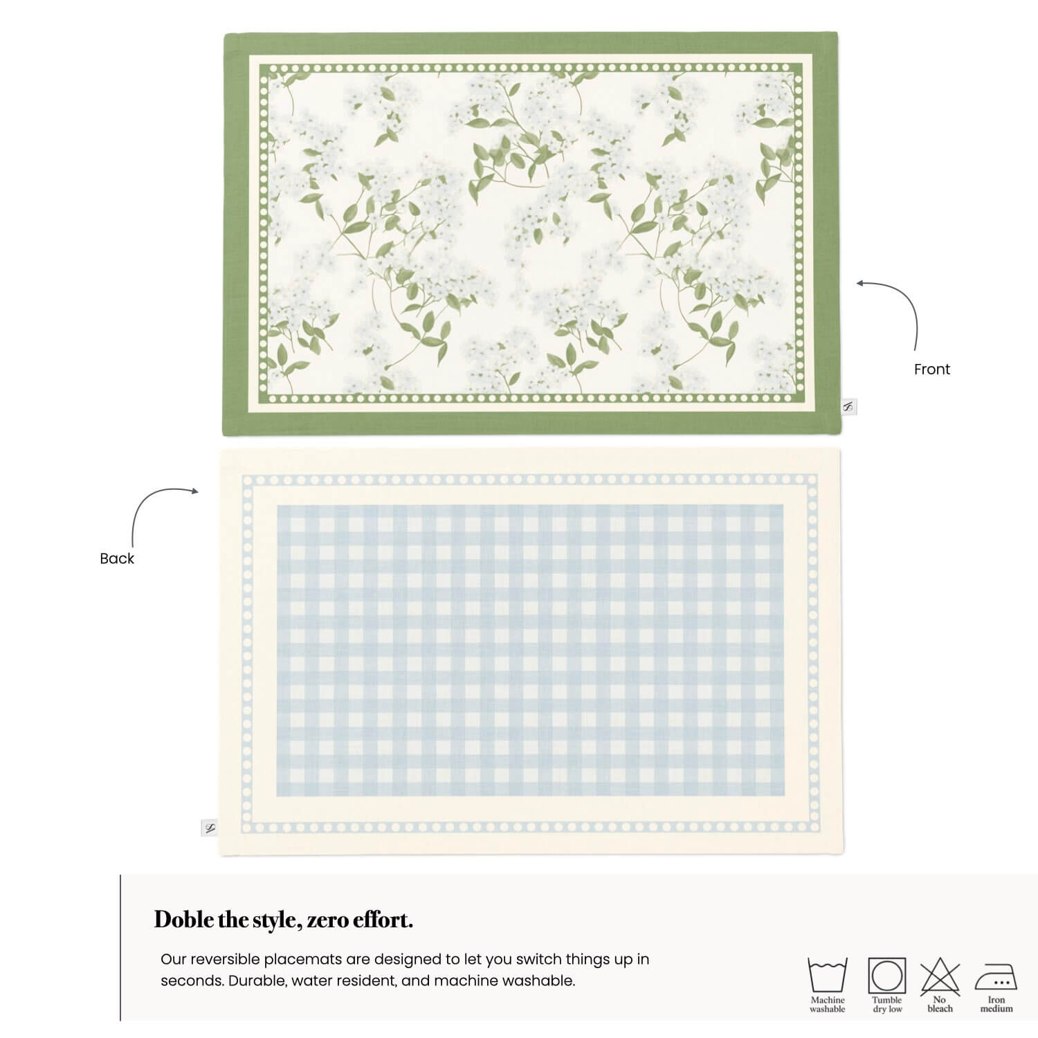 Nuestros individuales reversibles están confeccionados con AquaRepel™, una tela antifluido que ayuda a repeler líquidos y facilita la limpieza diaria. Su diseño doble cara te permite cambiar el estilo de tu mesa simplemente volteándolo, combinando practicidad y diseño en cada comida.