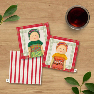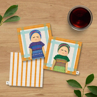 Worry Doll Gold Sienna Linen Coaster / Set 4