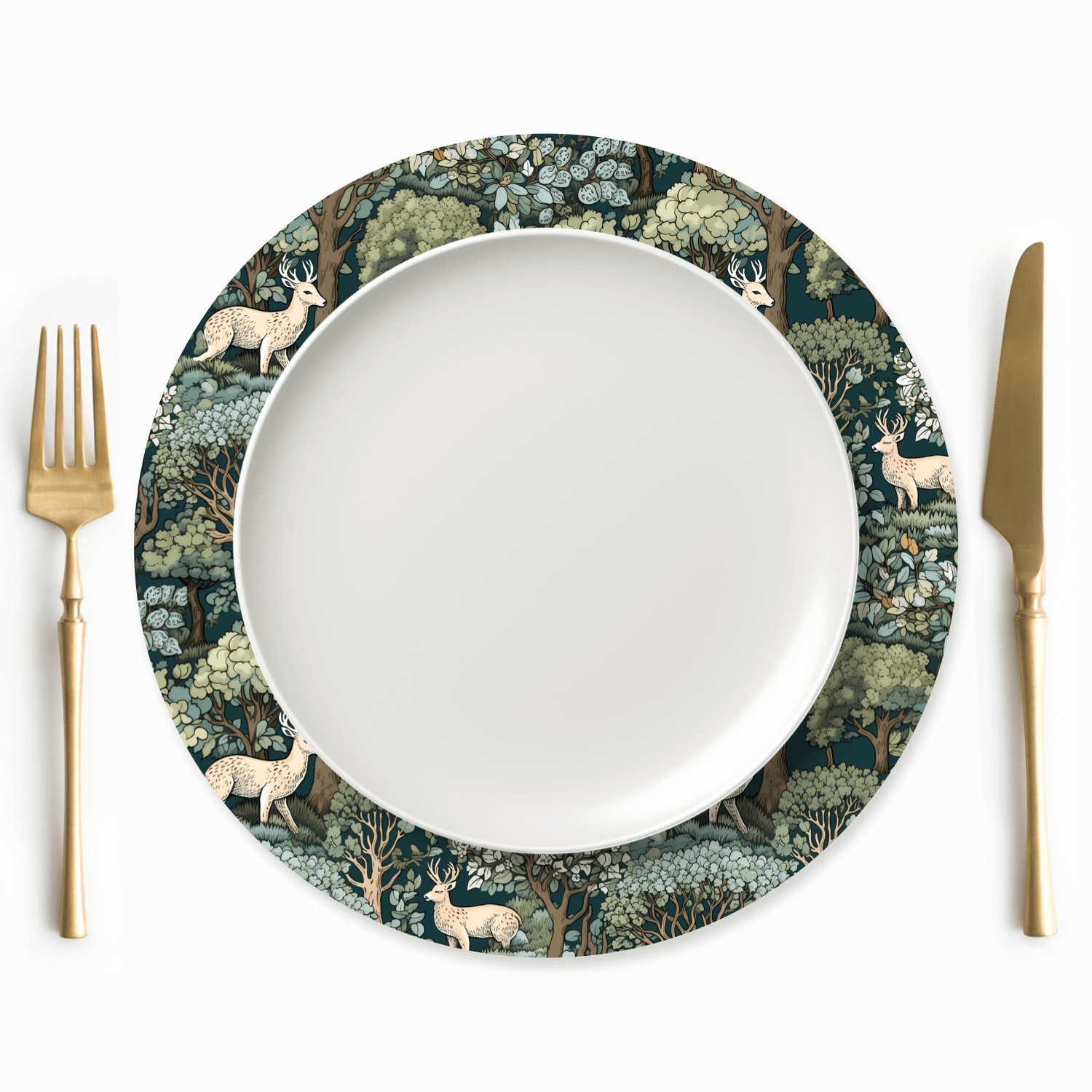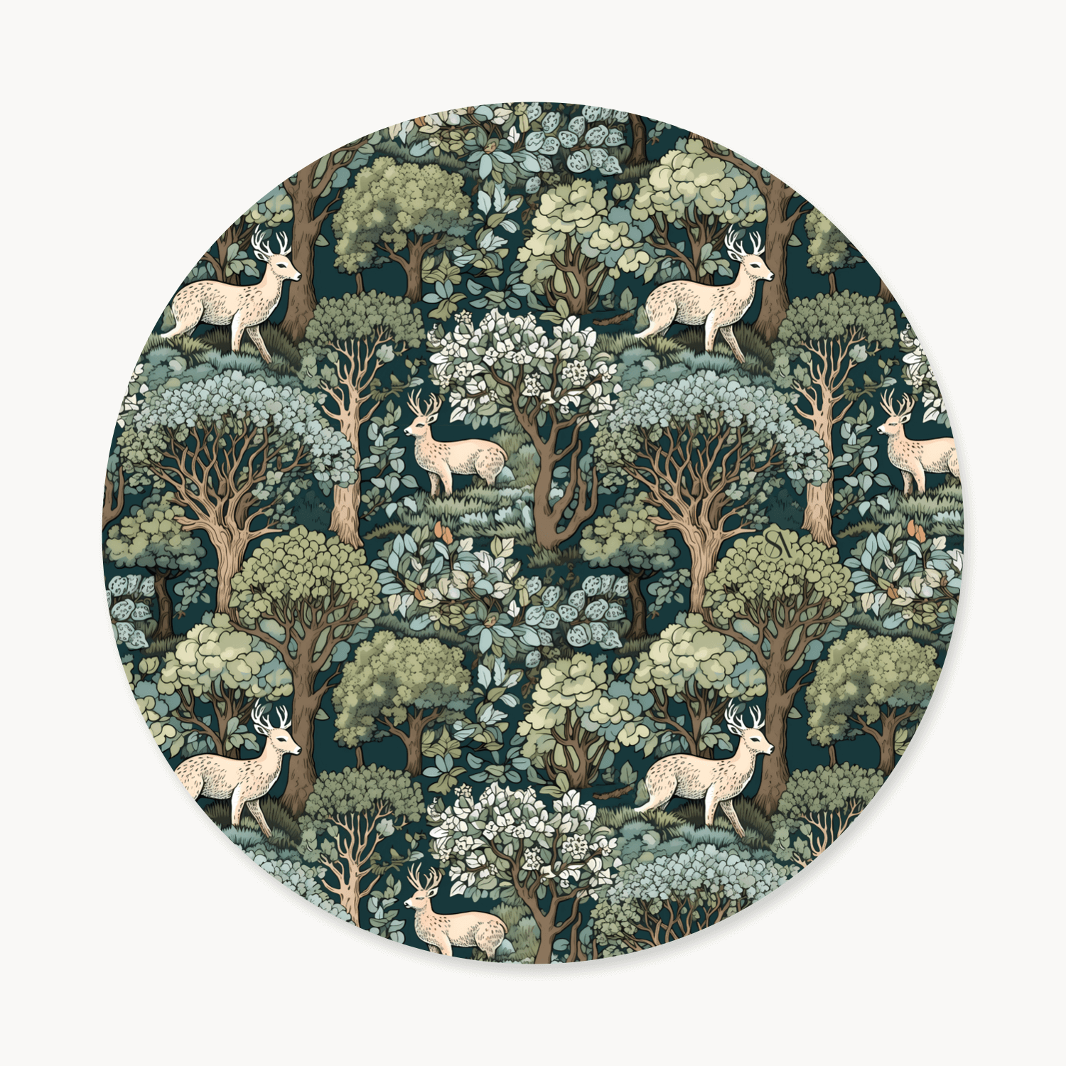 Inspirado en la tranquilidad del bosque invernal, este diseño combina tonos verdes suaves y crema con delicadas ilustraciones de ciervos y árboles. Hecho a mano en Guatemala con tela de apariencia tipo lino e impermeable, aporta un toque natural, cálido y elegante a tu mesa.