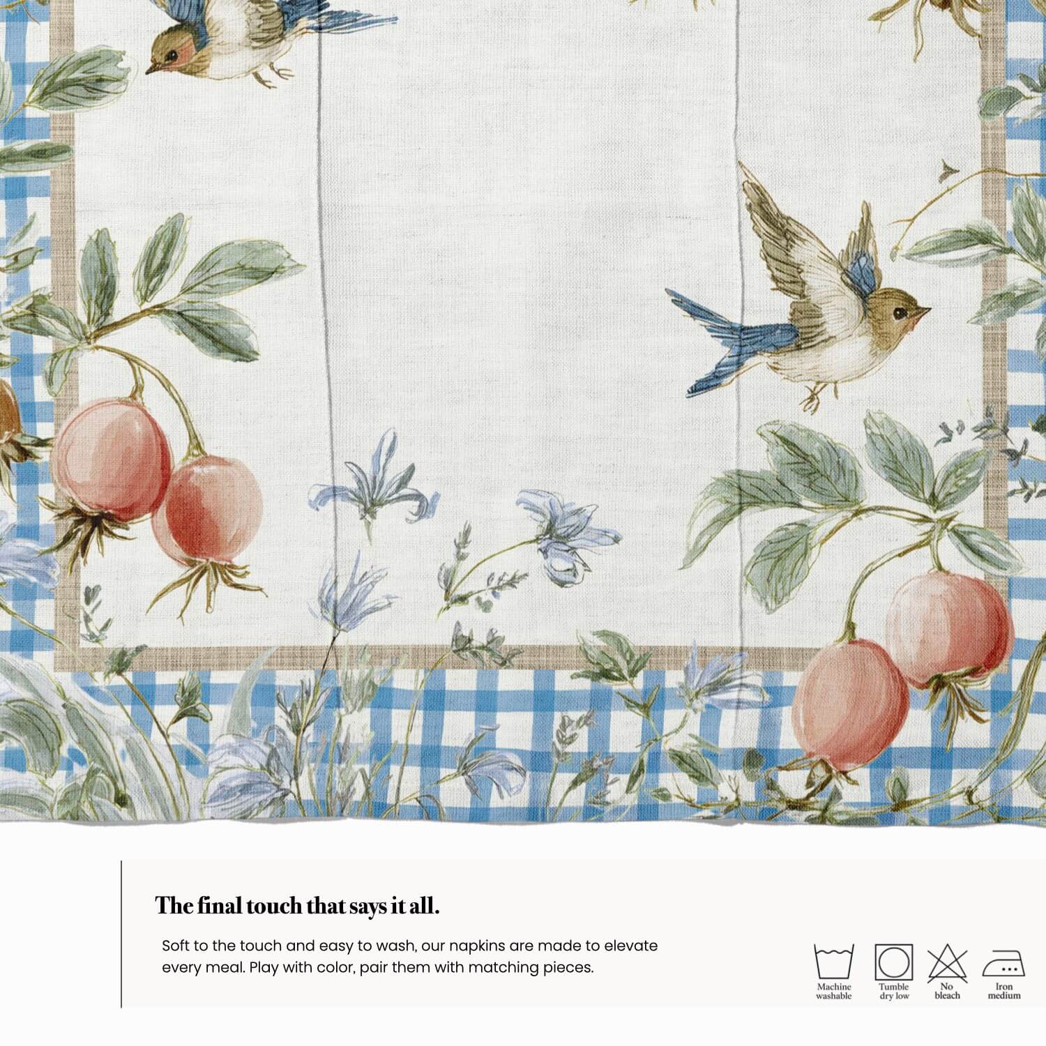 Nuestras servilletas están diseñadas para facilitar la limpieza y el cuidado diario. Son lavables, reutilizables y perfectas para el uso diario, combinando practicidad y diseño en cada comida.