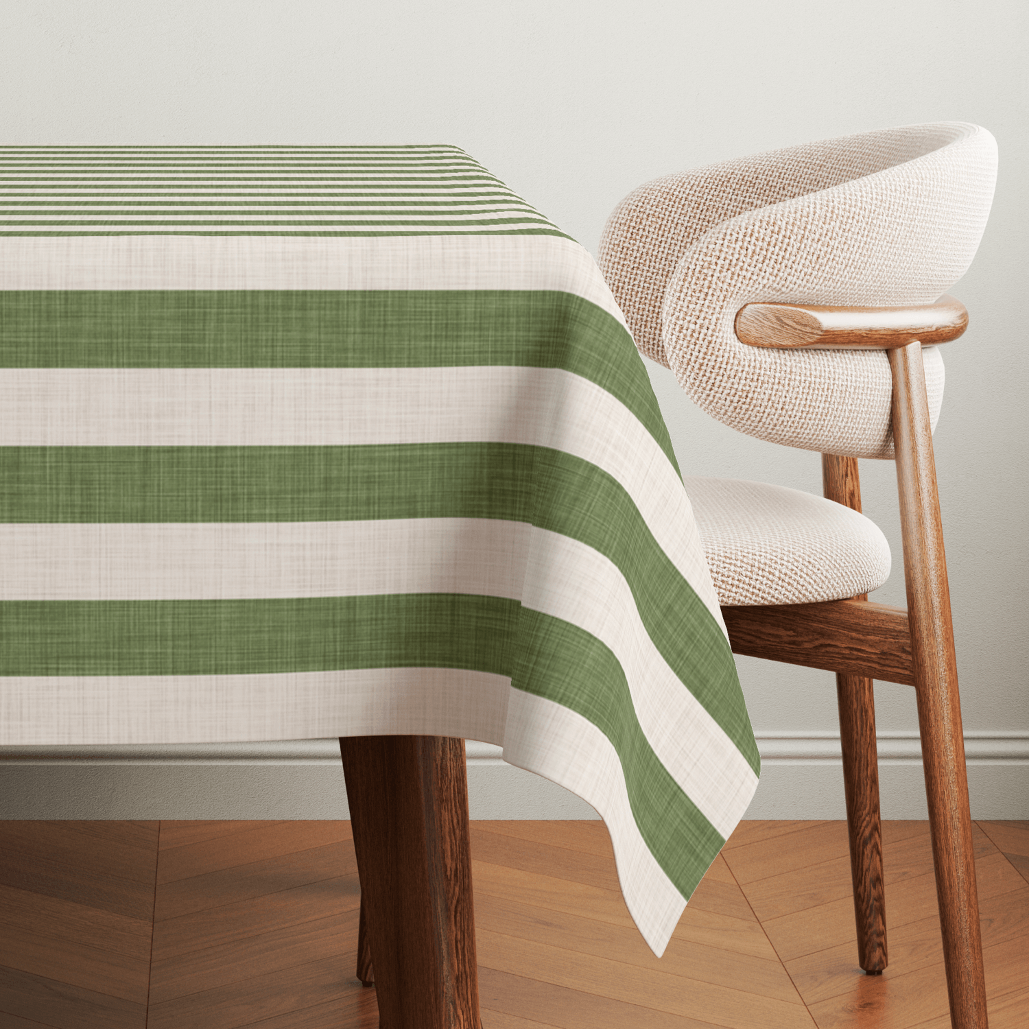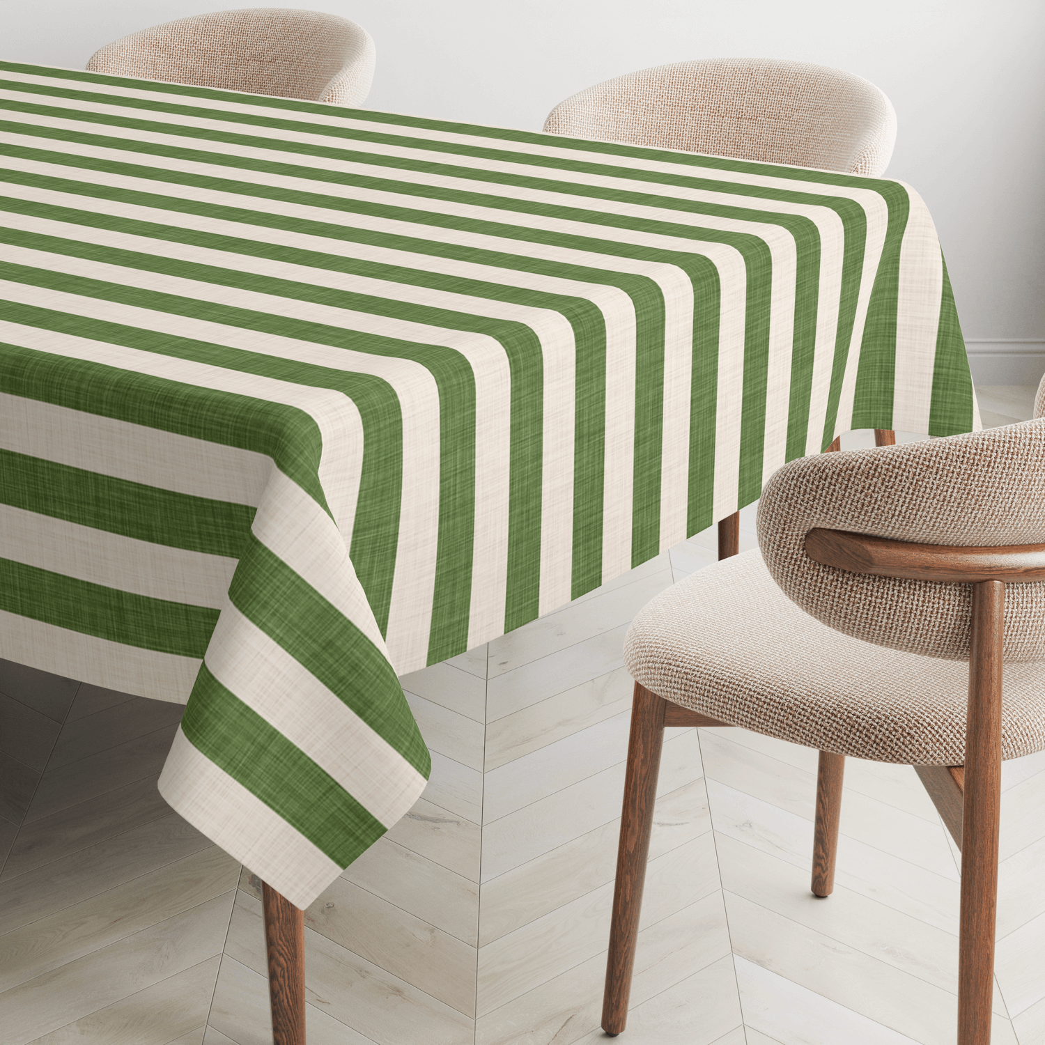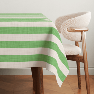 Naturally grounded, effortlessly elegant. Our Earth Moss Linen Stripes Tablecloth features soft green and natural white stripes that bring a calming, earthy touch to the table. With classic simplicity, it blends seamlessly into both rustic meals and elevated gatherings.
