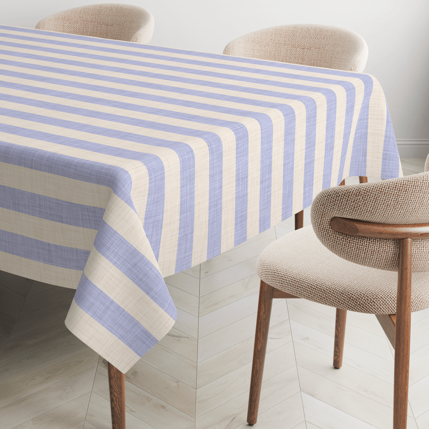 Soft stripes, timeless charm. Our Hydrangea Linen Stripes Tablecloth brings a calming touch to the table with delicate blue lavender stripes on a natural linen look background. Peaceful and pretty, it’s perfect for everyday meals or relaxed gatherings.